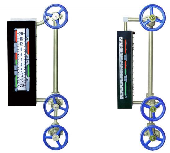 五窗、七窗水位計(jì)是在上述優(yōu)點(diǎn)基礎(chǔ)上,研制出在一塊本體上并列設(shè)置兩排窗口,通過光學(xué)原理轉(zhuǎn)換達(dá)到在水位計(jì)正前方±3o角范圍觀看水位計(jì)兩排窗口,可同時(shí)觀察到兩排窗口紅綠變化且紅綠分明、界面清晰,可在水位計(jì)可視范圍內(nèi)無盲區(qū)連續(xù)監(jiān)視。